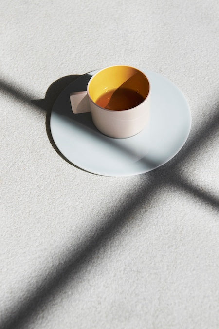 日本の伝統色である、淡く、果敢ない色の層を重ねながら、陶磁器という文脈の中で再解釈したテーブルウェアのシリーズは、現代的で非常に機能性の高い形の中に、有田の特有の色遣いが反映されています。